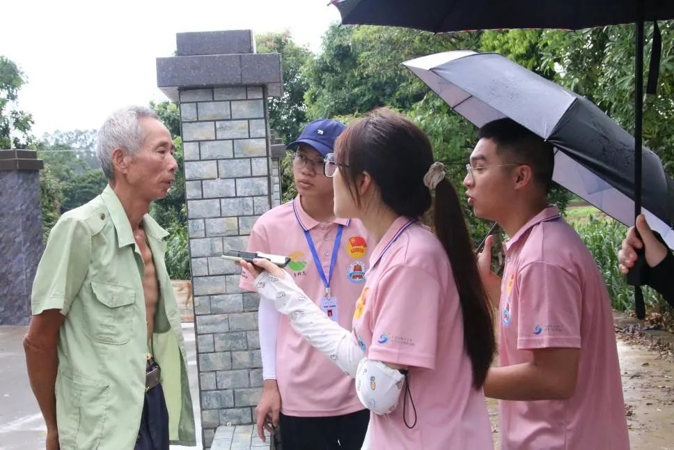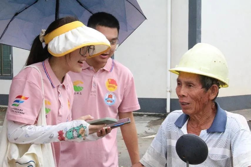 邱美雪与队员们采访村民(“青衿志”社会实践队摄)