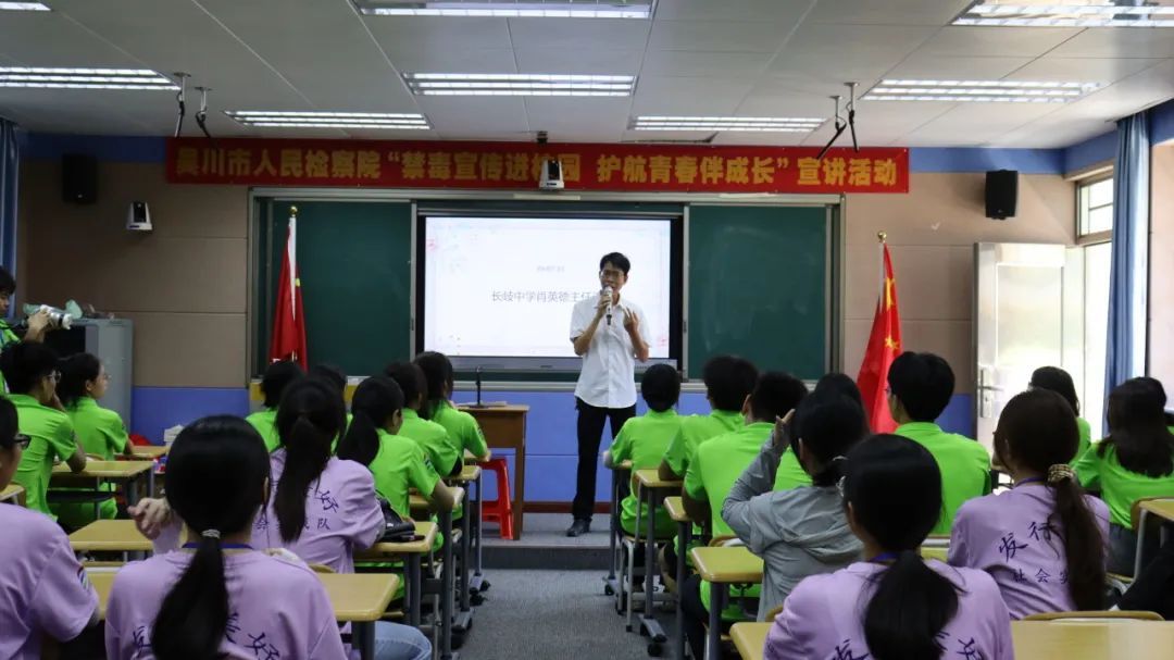 上午九点,“发行美好”社会实践队向着住宿地——湛江市吴川市长岐中学出发,他们将在长岐中学借宿十天,便于每日往返湛江市吴川市长岐村新联亿圣蚕桑种养专业合作社进行调研和宣传。经过一个多小时的车程后,“发行美好”社会实践队一行人到达目的地,长岐中学政教处主任肖英德热情接待各队员,并在简单的安置调整之后,进行了安全培训会议。