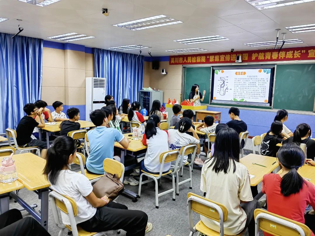 7月8日上午八点,伴随着“铃铃铃...”的上课铃声响起,吴川长岐中学的学生们在岭南师范学院“商之翼”社会实践队队员杨舒媛的教导下开始学习新的课程——生物科普课。