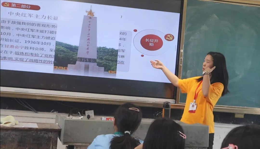 在师生互动环节,许文杰在课堂上提问中共一大召开时背景,让学生更加深入了解党的历史,并激励学生积极入党,为社会主义事业奉献自己的一份力量。