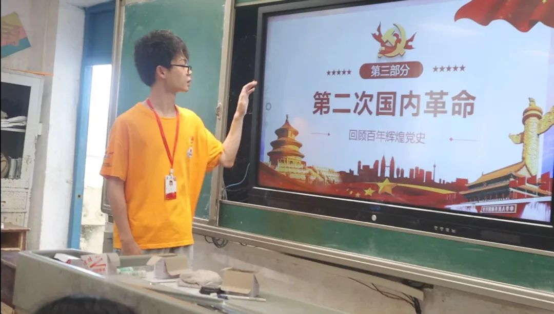 7月7日下午,“瞭望”社会实践队于雷州市东里镇第二中学开展了第一节党史宣讲课。本次教学通过队员授课、学生们观看党史视频和师生互动等形式开展。