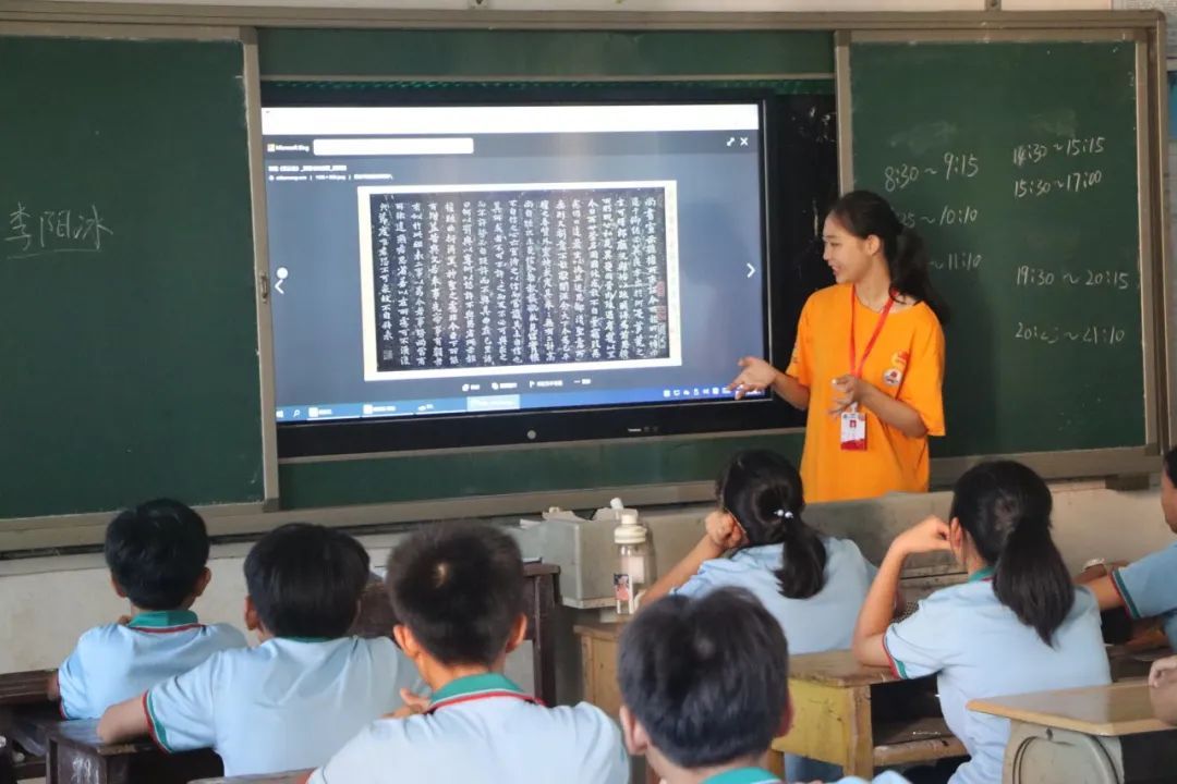 队员给同学们讲书法课(“瞭望”社会实践队摄)
