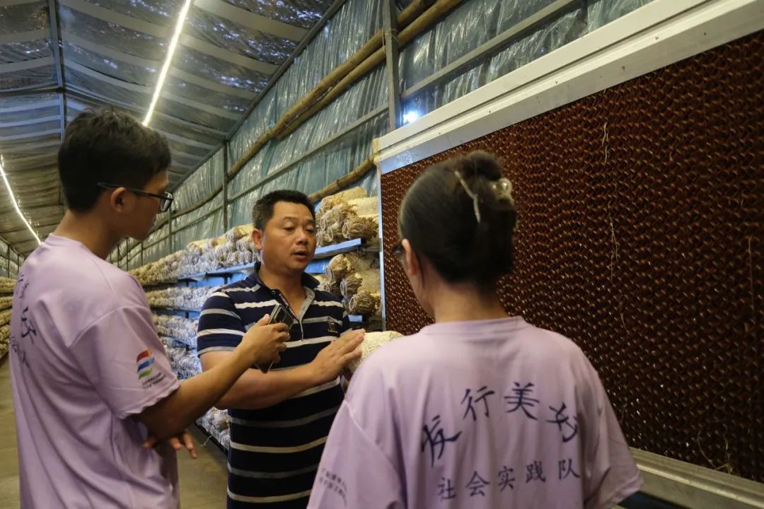 新联亿胜蚕桑种养专业合作社中专业种植灵芝和菌菇的乡土专家吴勇告诉来到此处实地调研实践的岭南师范学院商学院“发行美好”社会实践队的队员们。