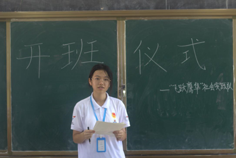 支教组成员刘哲萱主持基本课程班会(“飞跃鹰隼”社会实践队摄)