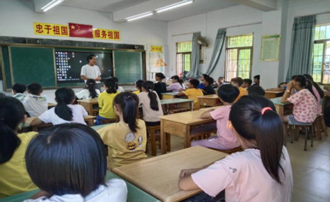 7月8日上午,岭南师范学院商学院“飞跃鹰隼”社会实践队和布政小学的学生们的第一节班会主题课正式开始了!支教组的成员秉持着宣传“快乐过暑假,安全不放假”的主题,向布政小学学生们传递知识与关爱。