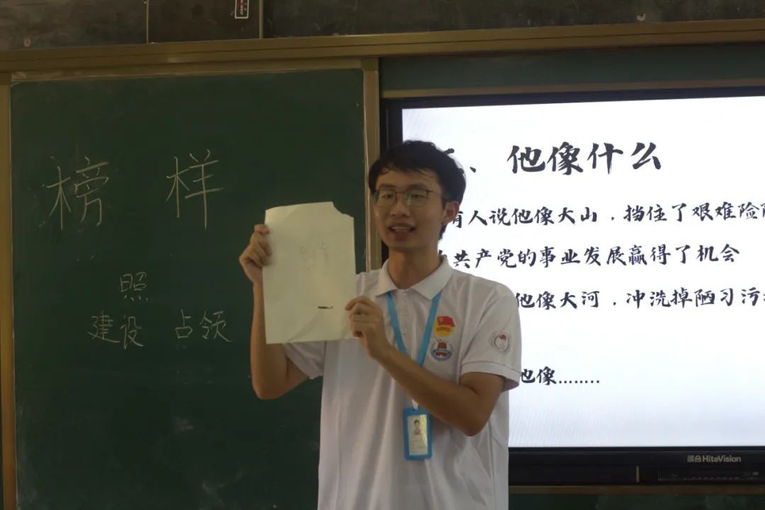 以谭平山先生为例子,队员继续向学生们讲授了何为榜样,并指出榜样所带来的先锋模范作用,引导学生们铭记历史,立足当下,领悟榜样精神。