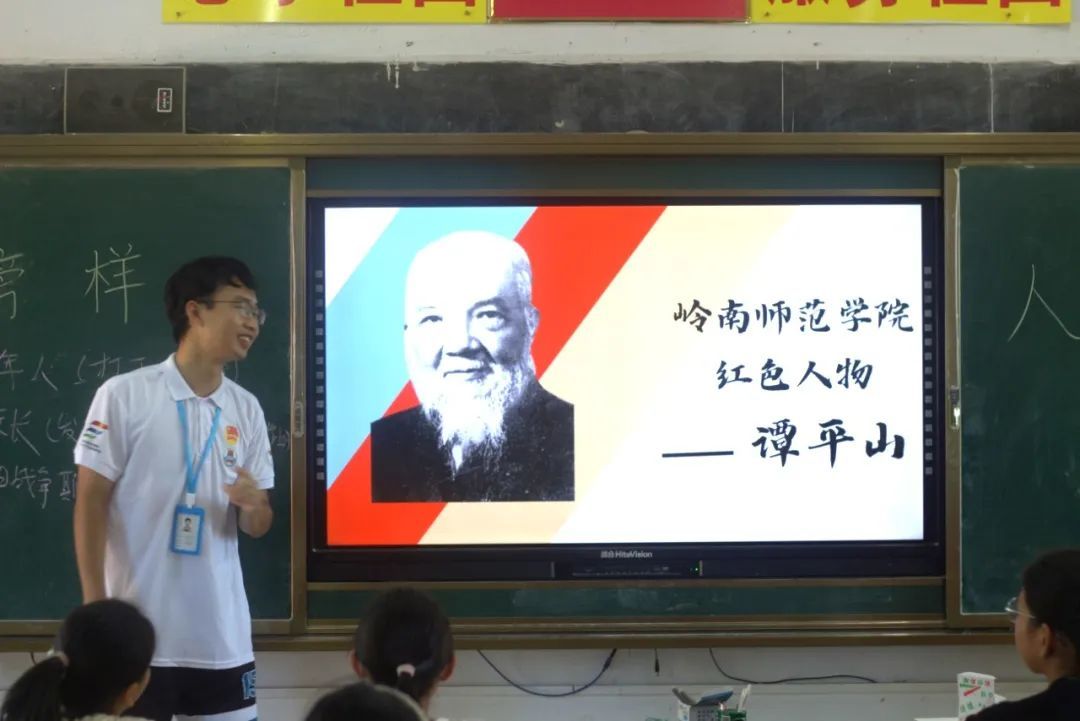 “第一次授课我是非常紧张的,但介绍的历史人物是与岭南师范学院相关的谭平山先生,心中就涌起了浓浓的自豪感,越讲越自信投入了。”经过一节课的时间,我们的支教组队员也有着许多感想,他赞扬孩子们上课很专注,但是也表示孩子们存在着腼腆不够主动的问题。希望在接下来的时间里经过不同特色课程的学习和课后的相处,孩子们能够放开自我,踊跃发言。