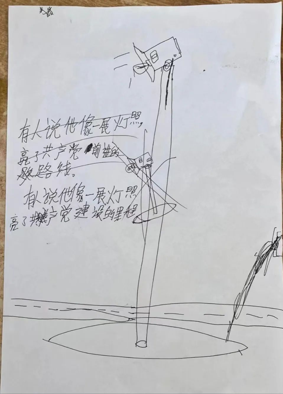 反复修改的答案是小学生认真思考的证明,谭平山先生在她心中的形象不只是小小的“台灯”,而是照亮共产党建设里程的高大路灯。学生在课程学习中感受到了谭平山先生伟岸的形象,这也是学习历史人物事迹的意义——给成长中的孩子一束光明的指引。