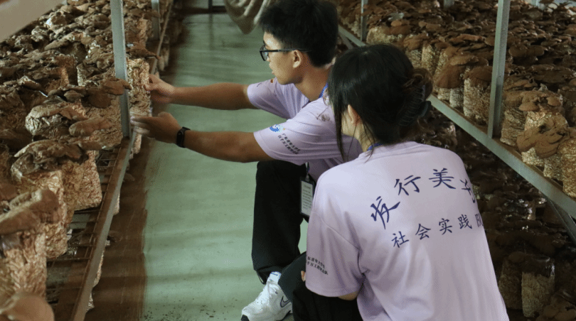 观察灵芝现场(“发行美好”社会实践队摄)