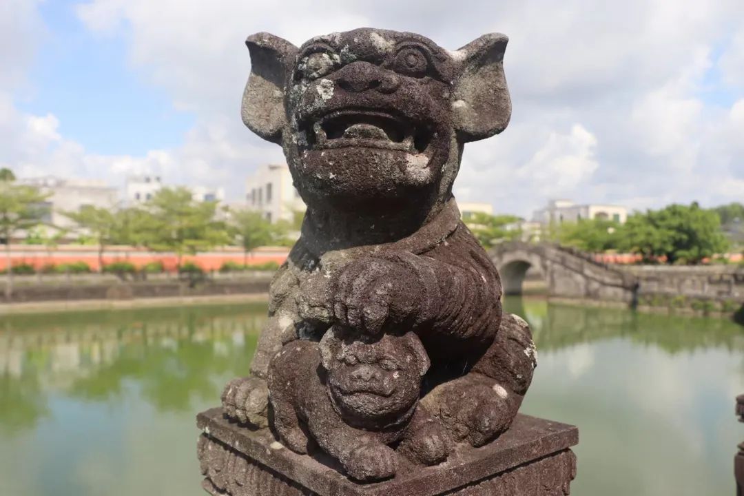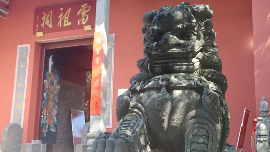 雷祖祠始建于唐朝贞观十六年,已有1300多年历史,是纪念唐代雷州首任刺史陈文玉而建。雷祖祠不仅是国家级文物保护单位,而且享有“岭南第一祠”的美誉,石狗元素非常丰富,具有强烈的雷州半岛气息。在雷祖祠词牌处,组员们发现四只大小相似的石狗呈对称分布在词牌上。走进雷祖祠,便看到“石狗桥”,桥的两边伫立着各种形状各异、神态各异的石狗。移步庙前,两座大石狗屹立在门口,威武肃立,似乎能驱赶一切妖魔。而庙里雷祖雕像威风凛凛,香火十分旺盛。雷祖祠承受着风霜的侵蚀,也见证着历史的变迁。