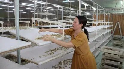 合作社负责人麦艳贞在清理蚕宝宝(“发行美好”社会实践队摄)