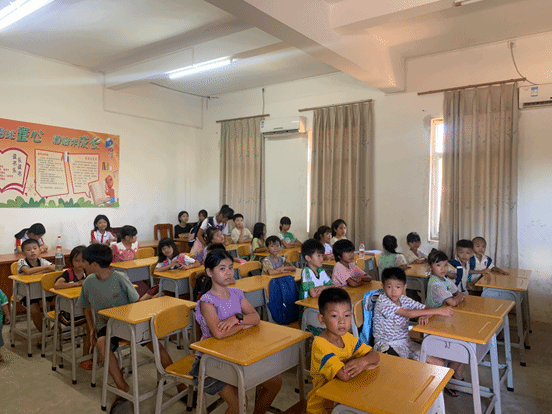岭南师范学院商学院“瞭望-下洋”社会实践队充分发挥党委党校在思想政治教育和党性教育中的阵地作用和熔炉作用,通过“党建+教育”的方式,为下洋镇墩尾村小学学生上党史教育课,抓住少儿党史学习教育,从小培养入党思想。