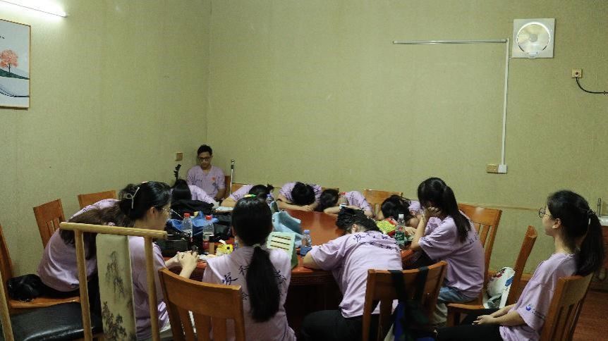 “发行美好”社会实践队队员趴在桌子上休息(吴婉婷摄)