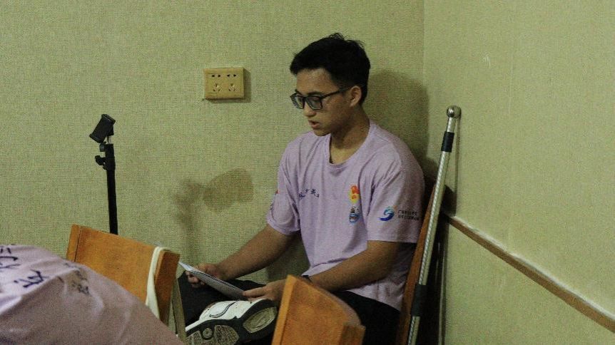 “发行美好”社会实践队主播在午休间隙默背直播脚本(吴婉婷摄)