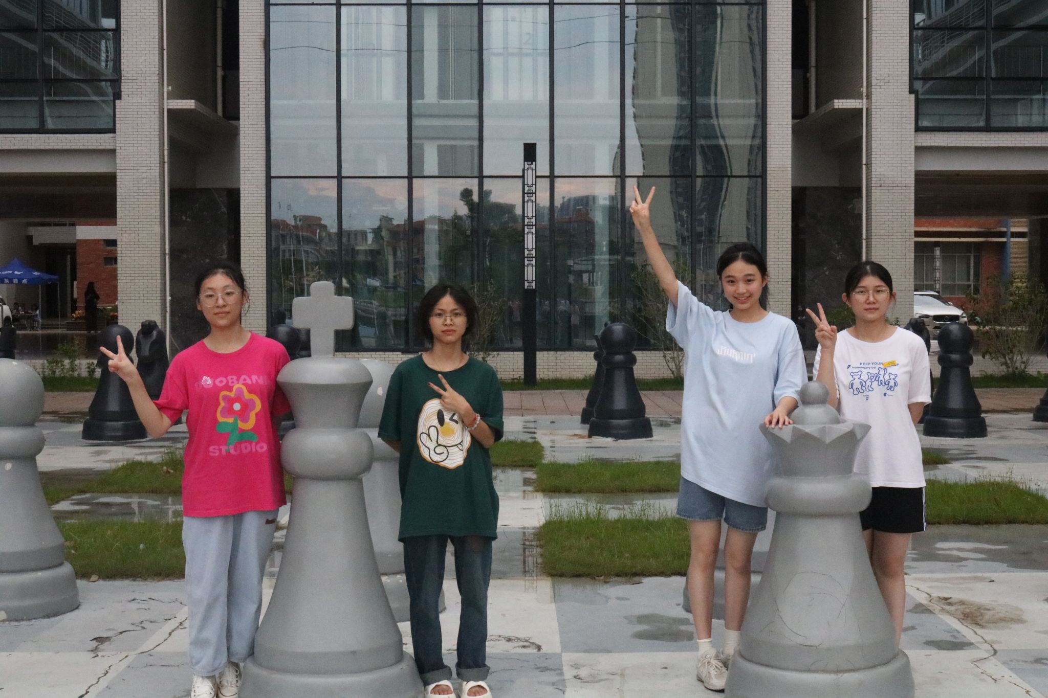 新生第一次打卡第五教学楼(赖秒彤摄)