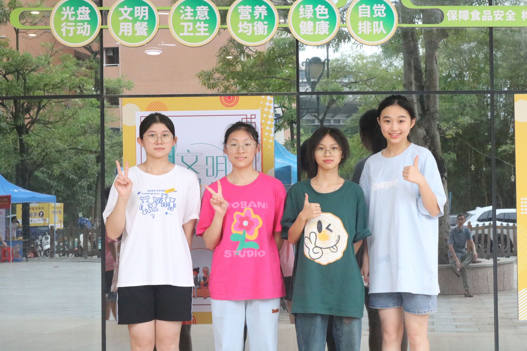 “明明是第一次来,但有一种久别重逢的亲切感!”报到当天,谢丽云带着父母来到岭师,她们从宿舍出发,穿过马路到鸿园食堂。每次看到打卡点,一家人立马一起合照,拉满仪式感。在鸿园门口打卡后,她就携着家人一起去食堂品尝第一餐。