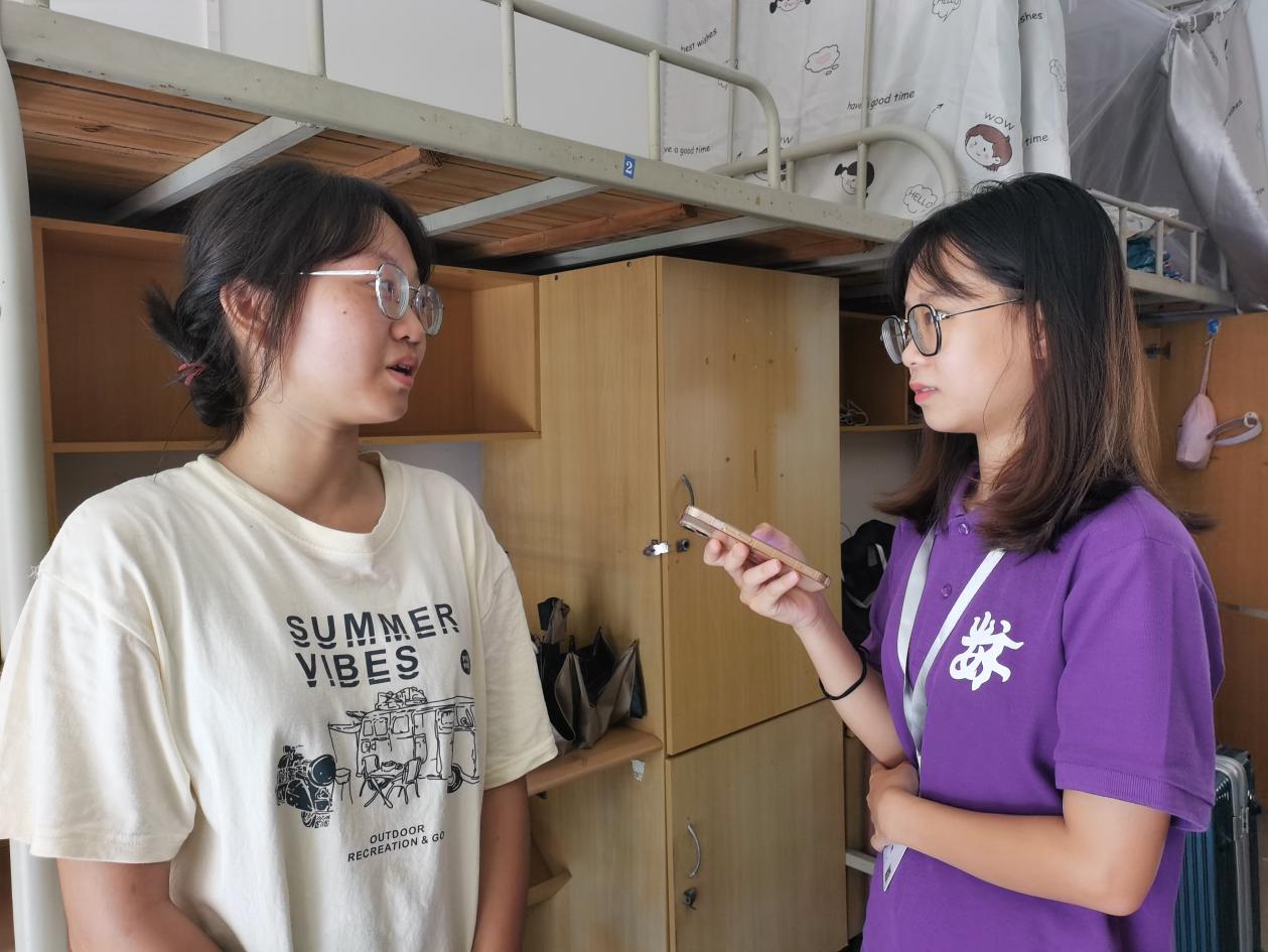 来自陕西的22级信计新生罗骁妍表示:“有序不紊的入校消杀程序,热情的新生报道引导,不顾疲惫的行李接送……这些暖心行为都让我感受到了数计大家庭的温暖。”谈及对大学生活的期待,她表示渴望进入学院篮球队,在大学四年里扎实专业知识之余,能在篮球中努力发扬拼搏进取精神,让人生如赛场般精彩!