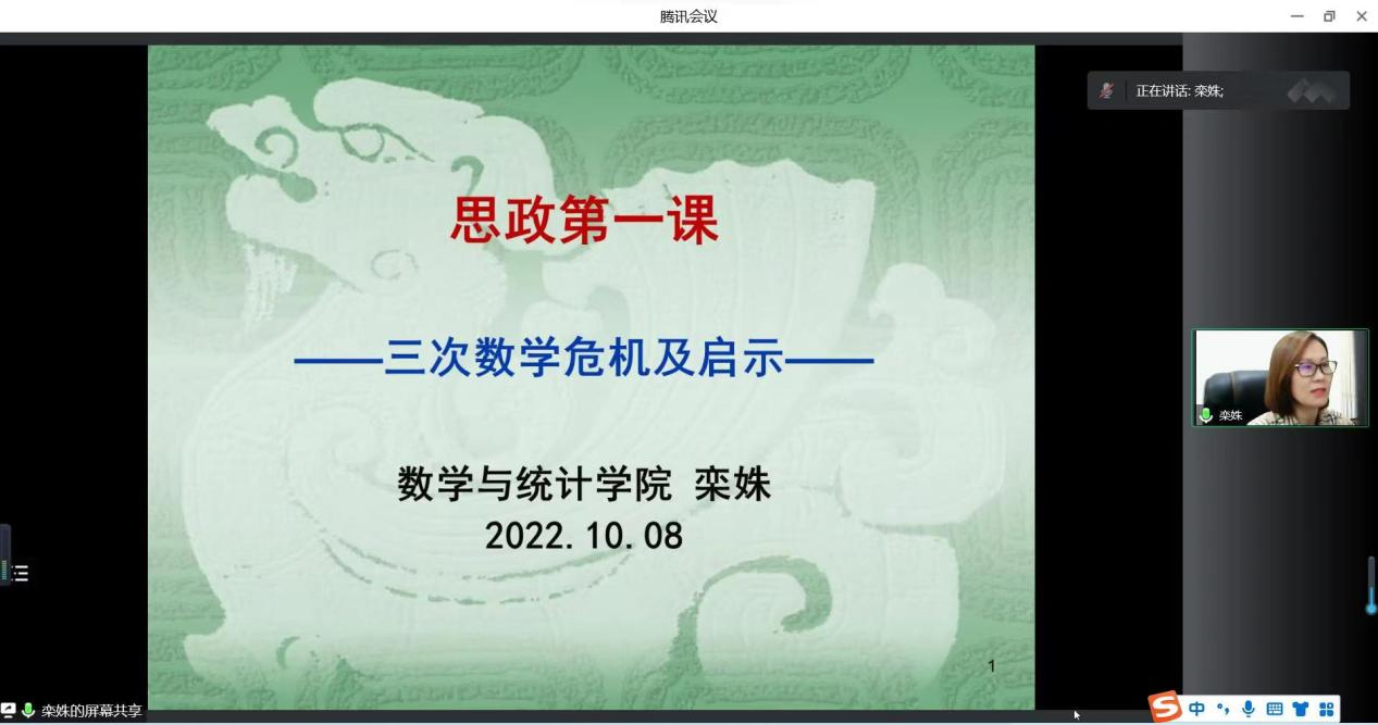 为了弘扬伟大的爱国主义和革命英雄主义精神,引导大学生树立正确的世界观、人生观和价值观,10月8日晚上,我院院长栾姝于线上会议开讲思政第一课,辅导员何姝仪主持本次会议,22级数本新生参加了本次思政第一课的课程学习。