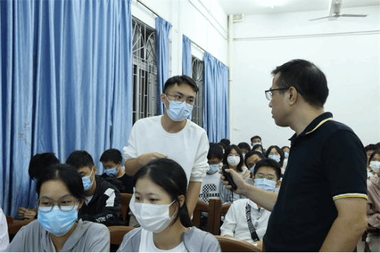 接下来是答疑环节,同学们就如何学好专业课、如何选择考研方向以及如何准备数学建模等提出问题,欧伯群、李旺威、肖瑾、李杰民等老师们耐心细致地回答了同学的提问,并希望同学们踏踏实实地学习,增加知识储备,打好专业基础,为考研和竞赛提前做好准备。