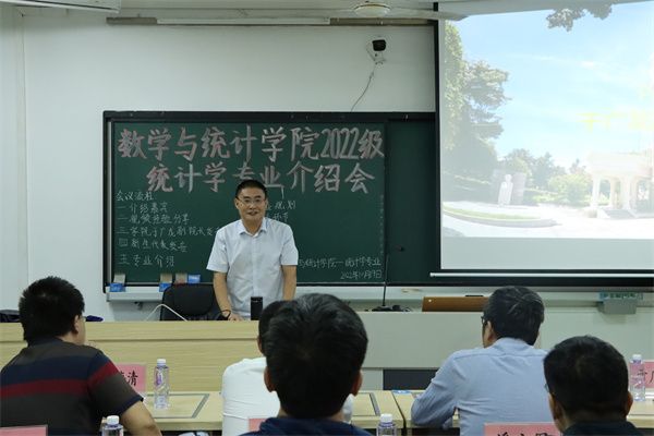 为增进新生对统计专业的了解,协助新生及时明确专业学习目标及发展方向,激发新生学习热情,进一步加强我院学风建设。10月19日晚,我院于榕燕楼301室召开2022级统计学专业介绍会。我院副院长于广龙、统计系主任赵海清、统计系副主任李观荣和统计系教师团队、2022级统计助理班主任以及2022级统计学全体同学出席本次介绍会。
