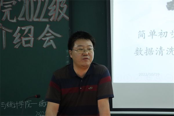 会上,赵海清主任就什么是统计学、专业建设与办学理念、学什么、怎么学四个方面向新生们全面地介绍了统计学并总结了学习方法。他强调,在知识技能方面,统计学的学生应该认真做好专业实验,夯实数学及统计学基础,熟练掌握计算机操作,提升编程能力及数据分析技术。他还表示,在为人处世方面,同学们要尊师重道,积极主动与老师、同学交流沟通,提升自我规范与规划能力。