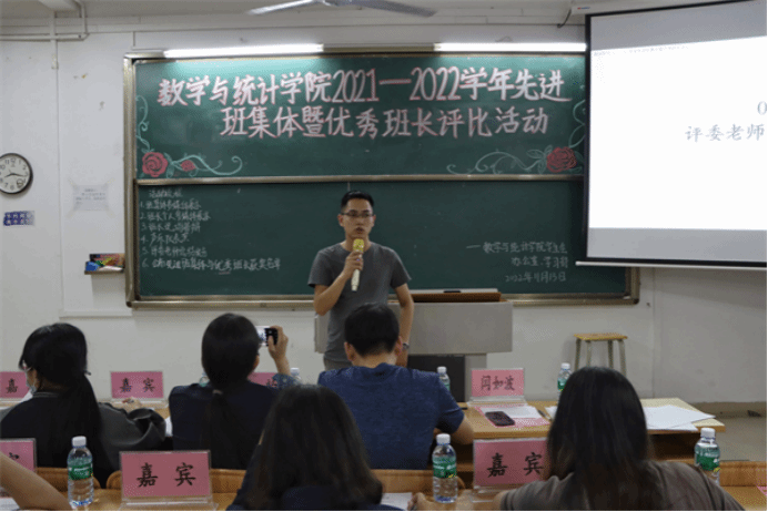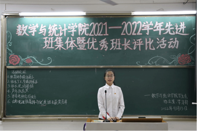 经评委老师们评定,20数本6班被评为“先进班标兵”,21数本4班、21数本1班、21数本6班被评为“先进班集体”,21数本4班班长余甘霖被评为“优秀班长”。