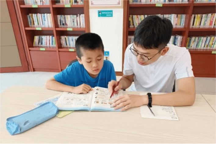 活动过程中,学生针对课业问题积极向志愿者请教,志愿者们热情地帮助学生解决学习上的难题,并基于学科基础进行知识面的拓宽,积极投身于基础教育服务中。在辅导过程中,志愿者们提升了自身的教学能力,与社区学生共同成长。