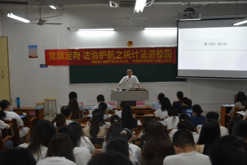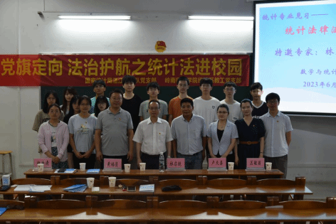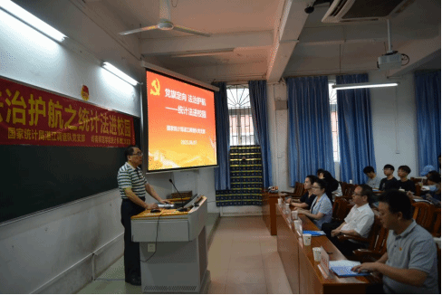 6月7日上午,数学与统计学院统计系联合国家统计局湛江调查队共同开展“党旗定向 法治护航之统计法进校园”主题党日活动。国家统计局湛江调查队党支部书记、队长林启锐,副书记卢天喜及调查队系统相关成员,数学与统计学院副院长吴勇旗、统计系主任赵海清及统计专业部分师生代表参加了活动。活动由统计系主任赵海清主持。