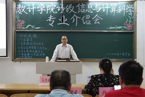 10月19日下午,我院于榕燕楼401室召开了2023级信息与计算科学专业介绍会。学院副院长吴勇旗、计算科学系主任周秀香、计算科学系副主任刘雄、计算科学系全体教师、2023级信计助理班主任以及2023级信计全体新生参加了本次介绍会。