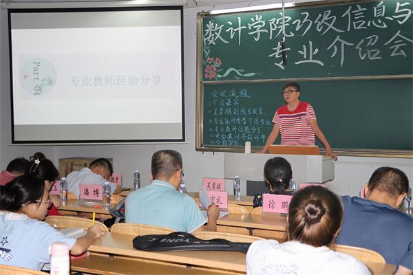 周秀香主任从历史沿革、毕业要求、教学计划和办学成效等方面详细介绍了信息与计算科学专业。她希望同学们提升数学素养,具备自主学习意识,养成自主学习习惯。最后以“勤学惜时,善思笃行”为结。