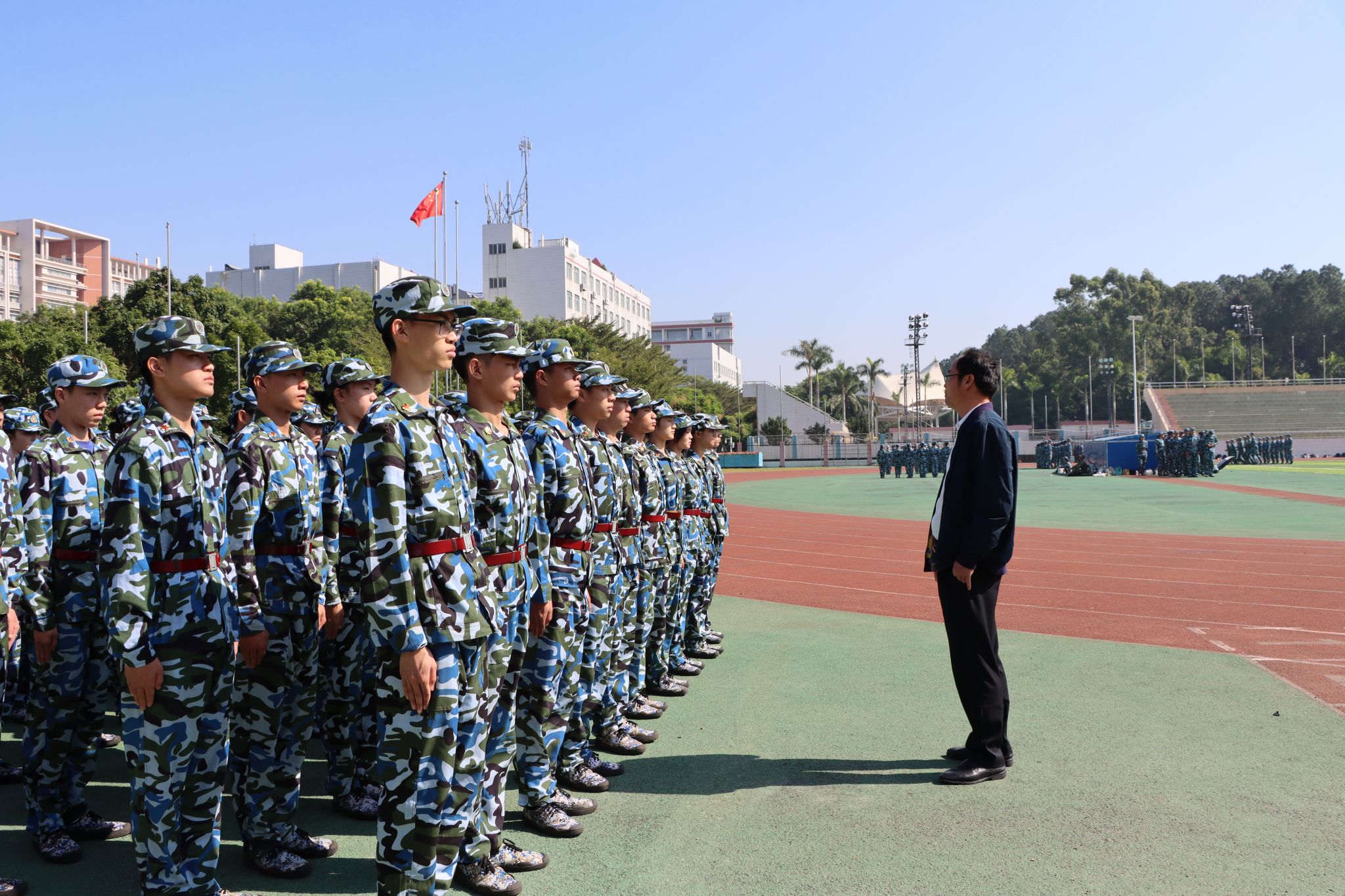 叶建仔书记亲自向教官和学生致以亲切的慰问,并肯定了参训新生积极昂扬的精神面貌。