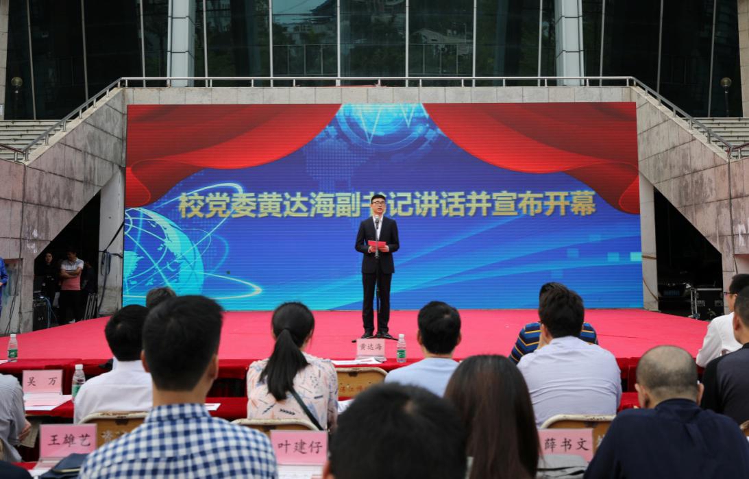 开幕式由校团委李发武书记主持。学生工作部部长、招生就业处李粤处长、教务处刘惠卿处长、科研处金义富处长参加开幕式,到场的还有二级学院党委副书记、分管科研的副院长以及创新创业指导老师、获奖师生代表。本次大赛由校团委、教务处和科研处主办,由各二级学院协办。