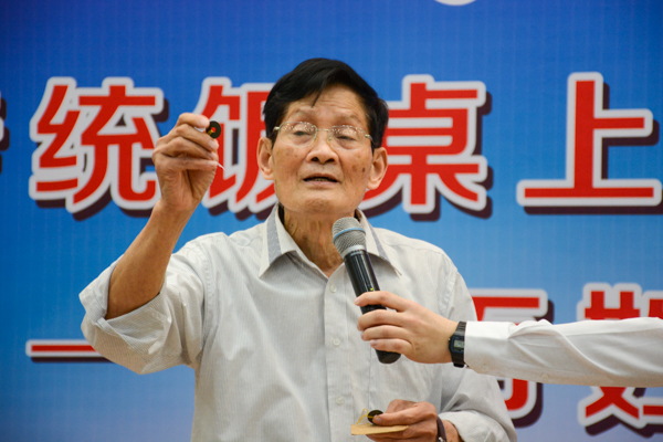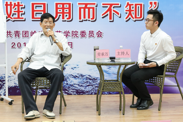 劳承万教授虽已七十余岁,仍坚持站着授课,不时在白板上写下引导性的关键词句。授课中也常常提及自己经历过的趣事,吸引了同学、书记和老师全神贯注的听讲。大家也积极回应教授。比如教授考到,知不知道中药里通常放一剂什么药来调和药性?同学们热烈讨论起来。最后是李发武书记答对了:“甘草。”劳承万对此表示,希望年轻一代花心思去了解这些文化常识,体会其中的精神涵养。