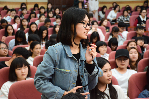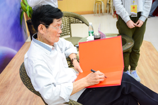 讲座结束了,但是很多同学围着劳教授请教,虽然讲了将近两个小时,教授还是耐心地一一回答问题。“教授推荐我们读什么书呢?”“《四书集注》,能够读通你就了不起啦!”“以后传统文化真的慢慢消失了怎么办呢?”“要靠你们年轻这一代了,你们是希望啊。”