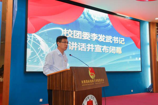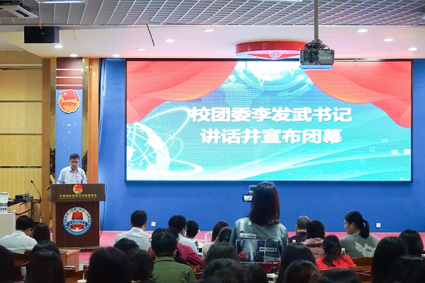 在闭幕式上,校团委李发武书记发表讲话。他首先向成功进入省赛作品的师生们表示热烈祝贺,给长期关心和支持我校创新创业事业的各级领导老师、为赛事辛勤付出的学生干部送去衷心感谢,并且预祝推送省赛的作品取得好成绩。