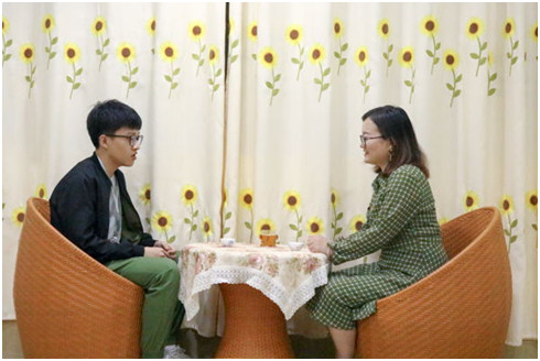当得知聊天的学生有工作学习方面的压力后,李佳书耐心倾听并引导他说出自己的想法。佳书老师像知心姐姐一样开导他当干部就是酸甜苦辣的多彩经历,哭过、笑过之后才是真正的收获学习和成长。对于学生觉得干部和老师、干部和干部、干部和学生之间沟通不足的疑惑。佳书老师则说:“我也一直在和学生做朋友,校团委一直在竭力打造平台给大家多沟通,就像今天这样坐下来喝喝茶聊聊天的交流。学生也应该多主动和老师交流,师生之间应当是亦师亦友的关系”。李佳书还鼓励干部多去做一些尝试,挑战自己,多总结经验,争做“当将军的士兵”。当然,除了工作之外,佳书老师也很关心学生的生活,鼓励他多发展其他的兴趣爱好。得知干部平时很喜欢唱歌,还鼓励他现场露一手。正如李佳书送给干部的藏头小诗里说的:翻开青春之章,亮出自我之彩。青春无闻东西,岁月自成芳华。在与老师交流后,干部表示很受用,并决心将工作和学习做的更出色。