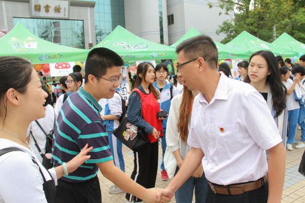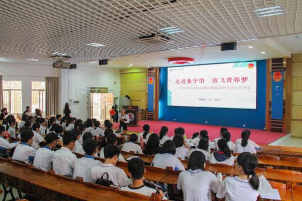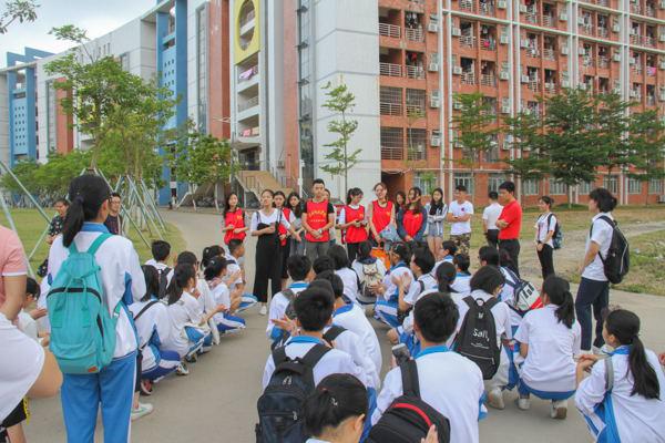 经过参观学习之后,学生们对我校已经有了大概的了解。在教三311会议室,我们开展了以“走进象牙塔,放飞青春梦”为主题的经验分享会。首先,校广播台副台长白庆华与学生们共同探讨青春的意义,鼓励学生们艰苦奋斗,用坚实的肩膀扛起时代的重任。接着,学生们就学习、生活、心理等方面的问题与我校优秀干部进行交流,干部们则结合自己的经验给学生们一些合理的建议。随后,在李发武等人的带领及陪同下,学生们在鸿园一起用餐,一同享用学校可口的饭菜。李发武谈到:“学校附近的中学应该充分利用资源,多来学校参观,让学生们更了解岭南师范学院,了解大学生活,开阔眼界”。午餐过后就是学生自由参观的时间了,学生们对我校生科院举办的一年一度的文化节尤其感兴趣,纷纷前往参与活动之中。