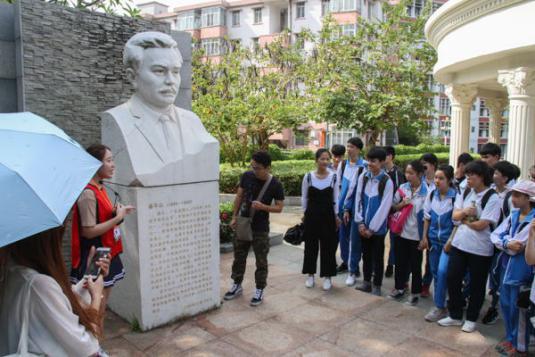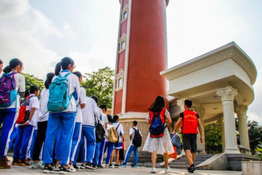 在学校负责人的热情陪同下,学生们参观了古榕广场、陶壁问渠、日晷、谭平山雕像(百年师范纪念塔)等学校的典型景点。讲解人员详细地向学生讲述学校的发展历史、景点渊源等,并耐心地解答学生们的疑问。学生们在古榕广场感受着迎面扑来的古朴的文化气息;在陶壁问渠感受抽象画的魅力;在宽敞的图书馆感受我校浓郁的学习氛围,这一切都让他们觉得新奇和向往。