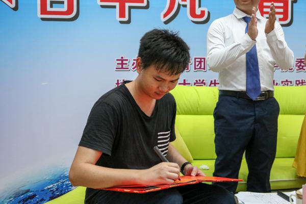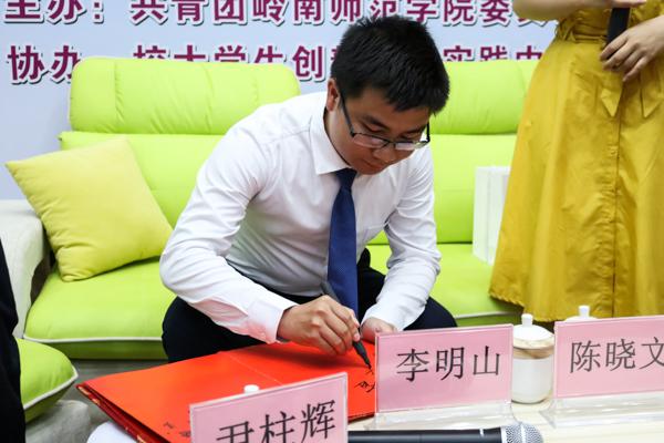 最后,同学们给三位优秀的师兄师姐送上礼品,并让他们题字留念。尹柱辉:“有梦就去飞,奋斗的故事很精彩”;李明山:“有志者事竟成”;陈晓文:“做一个幸福的人”。校团委李仁煜老师号召广大同学向他们学习,学习他们身上努力拼搏、坚韧不拔、热情主动的优良品质,争做科研团队“灵魂人物”。他给三位优秀的学生代表赠言:“天行健,君子以自强不息。地势坤,君子以厚德载物。”,并鼓励同学们:多做理性者,少当“键盘侠”;多做践行家,少做空谈梦;“吐槽”容易,实干不易;且学且珍惜,且错且做人。