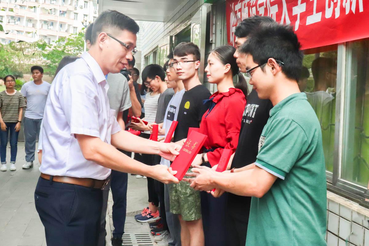 下午3:30,入驻仪式准时开始。李发武作为甲方代表,与作为乙方代表的项目团队负责人签订入驻合同。期间,团队负责人的欣喜激动溢于言表,双方握手合影。紧接着,李发武为入驻的团队颁发入驻证书表示祝贺,并赠送了创新创业励志书,寄语各团队在实训基地的一年里要珍惜机会、服从管理,使今后的创新创业项目进展顺利,争取在各项比赛中斩获佳绩。