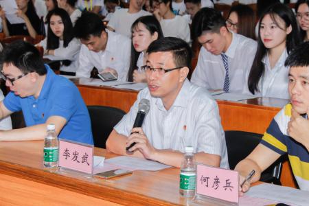 “最不愿意的时间还是到来了,最不愿意的场面还是出现了。每每此时此景,我总有说不出的纠结、说不尽的心酸。对于即将退任的老干们,或许你们正在唱起张惠妹的《解脱》,而我开始唱《你怎么舍得我难过》。对于准备上任的新一届主干们,也开始在为我们制造新的感动。”李发武动情而幽默地对干部们说道。此外,他还对学生干部的工作表示充分肯定:“我一直致力建设一个属于学生身边的共青团,于是提出‘想着学生的爱、走着学生的路、圆着学生的梦’这一服务宗旨,近两年来,我们一直努力践行着。十九大前,我们共青团开始全面改革;十九大后,我们走进新时代,也迎来新挑战。改革的成就有你们的汗水,品牌的打造有你们的智慧,成绩的获得有你们的功劳。”他鼓励新一届干部们不忘初心,砥砺前行,继往开来。