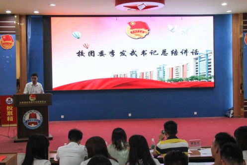 为选拔优秀干部人才,继续培养高素质团学干部队伍,6月9日,我校共青团在教三311隆重举行2018-2019学年校级学生机构主要干部换届大会。校团委李发武书记带领校团委老师出席会议,校级学生机构、各二级学院学生干部代表参加本次换届大会。