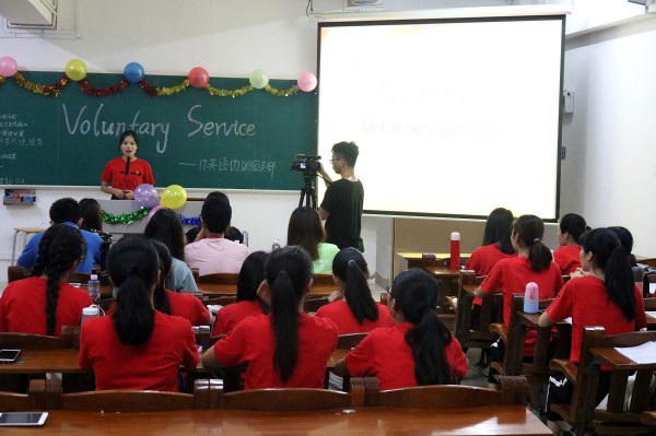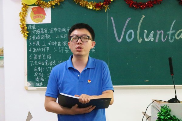 在主持人的带领下,全体成员高唱团歌,开始了这次团日活动。在此次活动中,每个团支部成员围绕“志愿服务”为主题进行全英演讲,将团组织生活与学习生活结合起来,既推动了团组织的建设,也激发了支部成员对演讲的兴趣和激情。团员们通过这种方式提高了自身的志愿服务意识,激发了支部成员对演讲的兴趣和激情,同时他们也深刻的明白了积极投身实践的重要性,对他们来说意义重大。