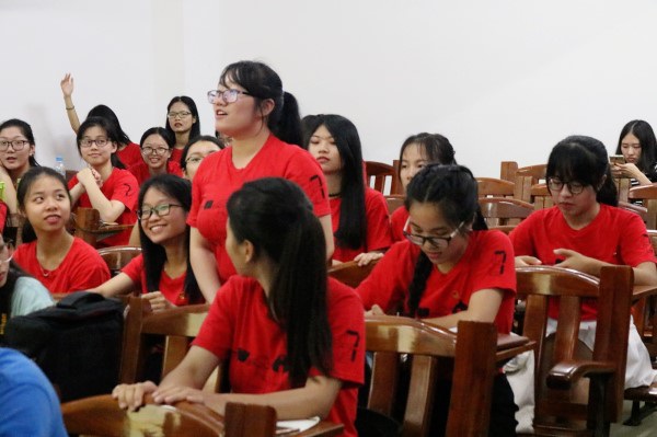 团支部成员积极抢答问题(朱菲摄)