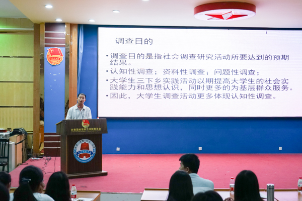 实践要出成果主要靠调研,从而实现实践成果无缝对接科研立项、“攀登计划”、“挑战杯”等赛事。马克思主义学院林兴副教授从调研思路、调研目的、调查方法、论文撰写等进行调研专题培训,他结合自身调研和指导的经历展开讲解,对调研调研思路的设计,调研过程中遇到困难,论文结构等进行一一解析,为同学们调研理清思路,选准课题、明确方向提供具体指导。