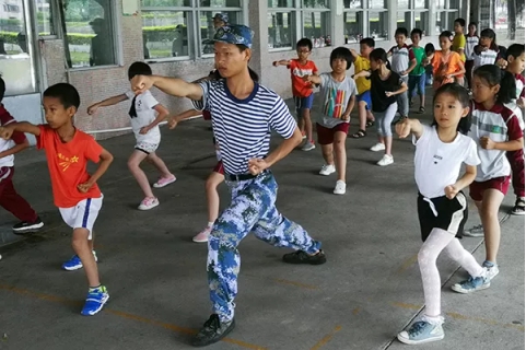 十九大在有关国防和军队建设指出,要培养有灵魂、有本事、有血性、有品德的新时代革命军人。7月24日,岭南师范学院“笃行扬梦”社会实践队与范湖小学的学生们一起走进军事课堂,从近代历史的讲解到军体拳的学习,为学生提供有趣生动的军事理论知识和提高身体素质的新途径。