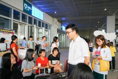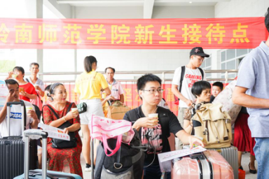 据悉,今年校团委共派出近300多名学生干部奔赴湛江西站、火车南站、湛江机场、麻章车站、海田车站五大校外站点,全天等候迎接,并派出将近20辆专车大巴将新生送到报到处。