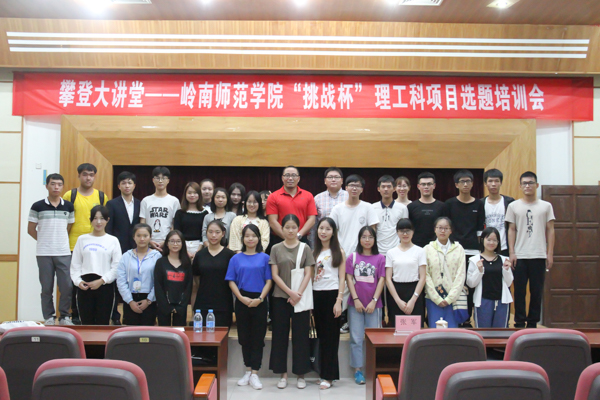 什么是“挑战杯”大赛?如何在“挑战杯”大赛中找好选题?10月21日晚在图书馆学术报告厅,我校张军博士做客省攀登大讲堂之岭南师院“挑战杯”理工科项目选题培训会,对同学们筹备明年的挑战杯进行指导。全校众多学生慕名参与。受校团委李发武书记委托,校团委李仁煜老师出席了会议。