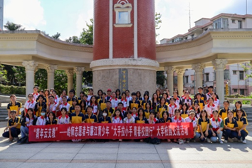 大手拉小手,青春校园行。11月4日,来自廉江市河唇二中“青年云支教”项目的37名学生代表,在岭南师范学院大学生志愿者“一对一”带领下走进大学校园,感悟红色文化,在交流体验中培养青少年“强国有我”的爱国情怀。活动分为“青春之光映初心”“薪火相传感党恩”“强国有我创未来”三个环节。
