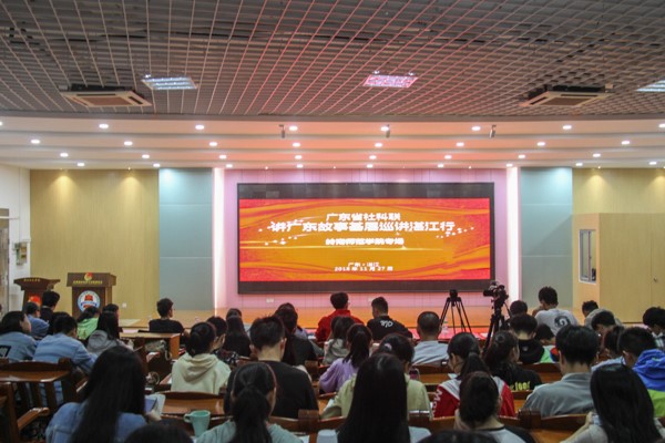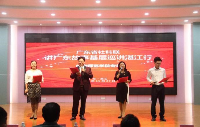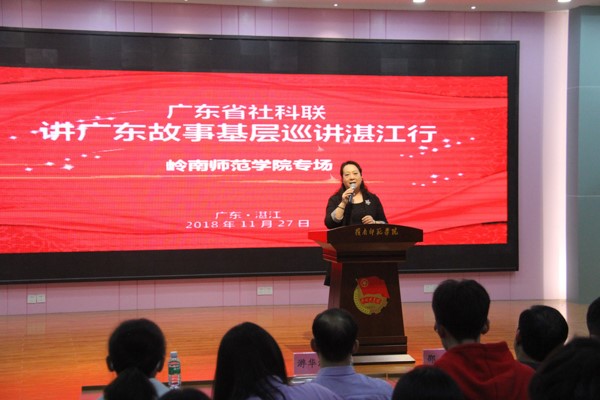 11月27日,我校团校培训班学员、各二级学院团校分校学员参加了广东省社科联讲广东故事走进岭师的巡讲活动。活动中,通过讲故事、朗诵、歌唱、演讲等节目的演绎,学员们进行了一次别样的团学课堂,增进了对社会主义核心价值观和优秀中华优秀传统文化的理解,以及对改革开放卓越成就的认识。